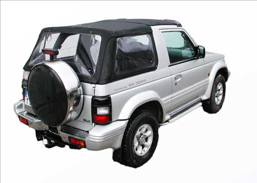 Das Hinterteil des Pajero V20 Ersatzverdeckes hat Seitenteile die man rausnehmen kann.